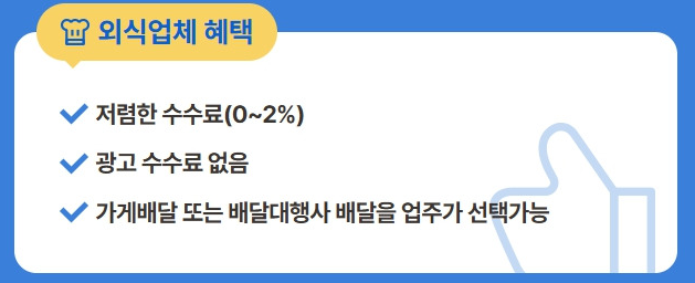 소비자는 부담 없이 음식을 주문하고, 자영업자는 수수료 부담을 줄일 수 있습니다.