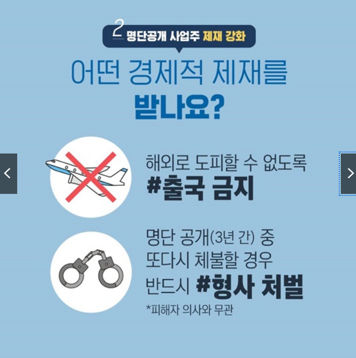 고용노동부는 상습 임금체불을 근절하기 위해 명단공개 제재도 강화했습니다.