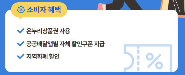 뿐만 아니라, 대부분의 공공배달앱은 지역화폐와 모바일 어플을 결합해 소비자가 결제할 때 5~10% 캐시백 혜택을 받을 수 있습니다.