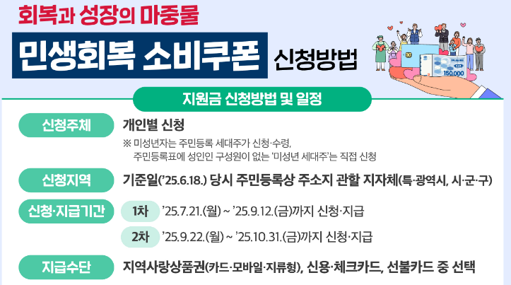 - 정부24, 행정복지센터 홈페이지, 카드사 홈페이지 등에서 신청 가능
