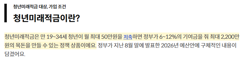 - 청년적금, 청년도약계좌, 청년우대형적금 대비 높은 정부 기여율(최대 12%)